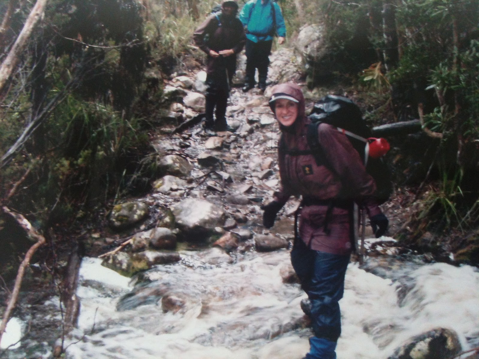 Weather conditions in the Tasmanian mountains alter endlessly- not just day to day but hour to hour. We rugged up against the bone -rattling chilly winds, stripped off in the blazing sun, donned raincoats in the rain, pulled off gloves, put on sunscreen, needed sunglasses, leak proof plastic bags, shorts, thermals and an overcoat of humour.Walk, wind, walk , rain, walk, sun, smile…