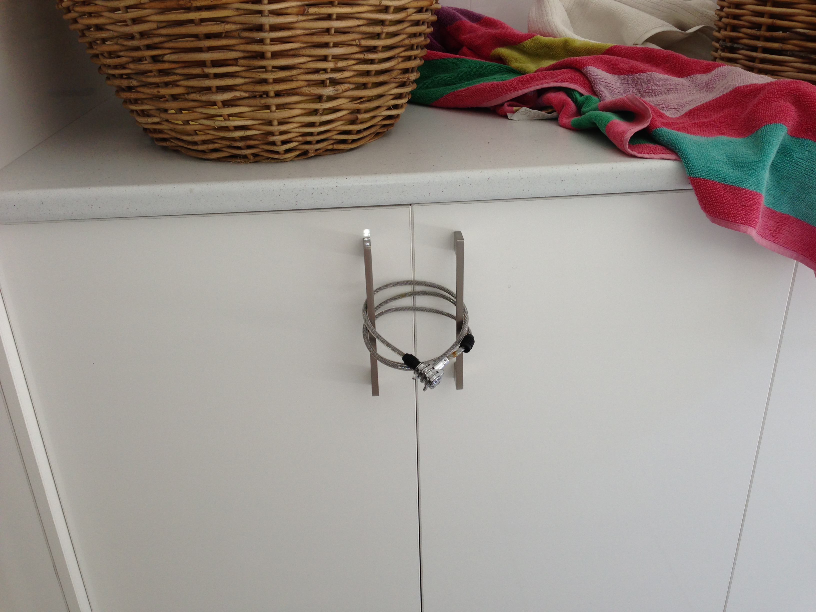 I realised that by stretching the loops on the lock I could open the cupboard to almost full capacity and take any towel I wanted.